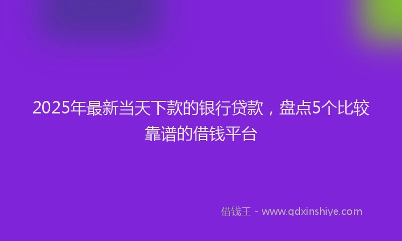 2025年最新当天下款的银行贷款,盘点5个比较靠谱的借钱平台