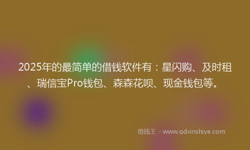 2025年的最简单的借钱软件有:星闪购、及时租、瑞信宝Pro钱包、森森花呗、现金钱包等。