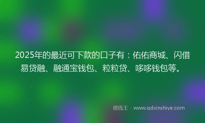 2025年的最近可下款的口子有:佑佑商城、闪借易贷融、融通宝钱包、粒粒贷、哆哆钱包等。