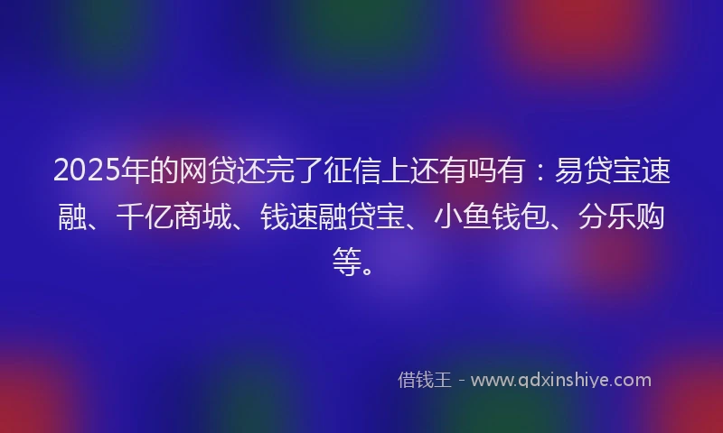 2025年的网贷还完了征信上还有吗有:易贷宝速融、千亿商城、钱速融贷宝、小鱼钱包、分乐购等。