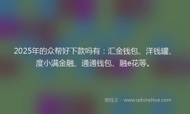2025年的众帮好下款吗有:汇金钱包、洋钱罐、度小满金融、通通钱包、融e花等。