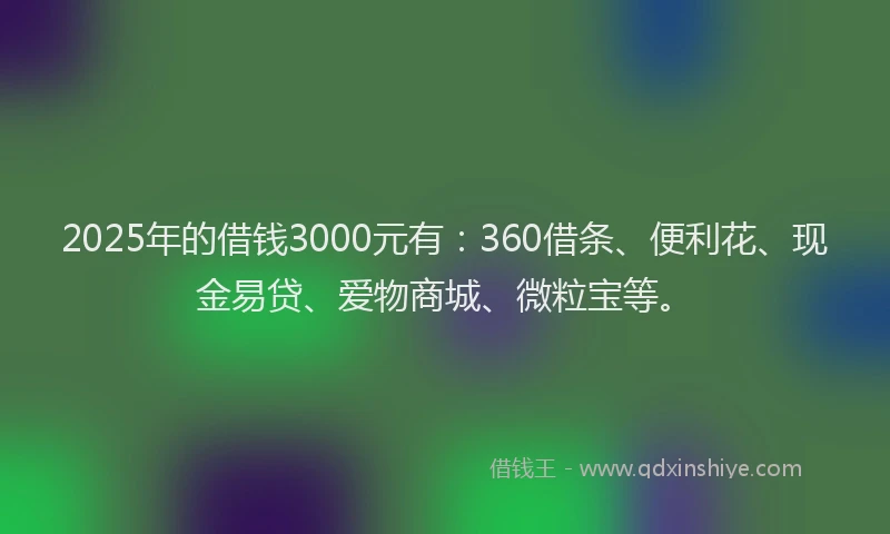 2025年的借钱3000元有:360借条、便利花、现金易贷、爱物商城、微粒宝等。