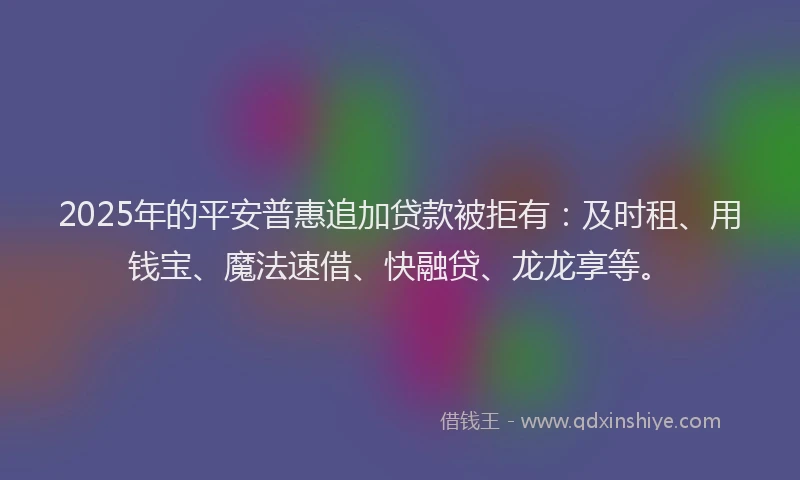 2025年的平安普惠追加贷款被拒有:及时租、用钱宝、魔法速借、快融贷、龙龙享等。
