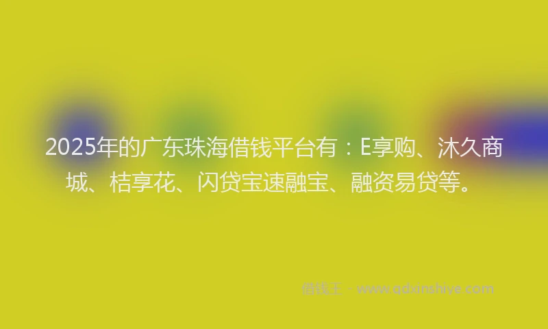 2025年的广东珠海借钱平台有:E享购、沐久商城、桔享花、闪贷宝速融宝、融资易贷等。