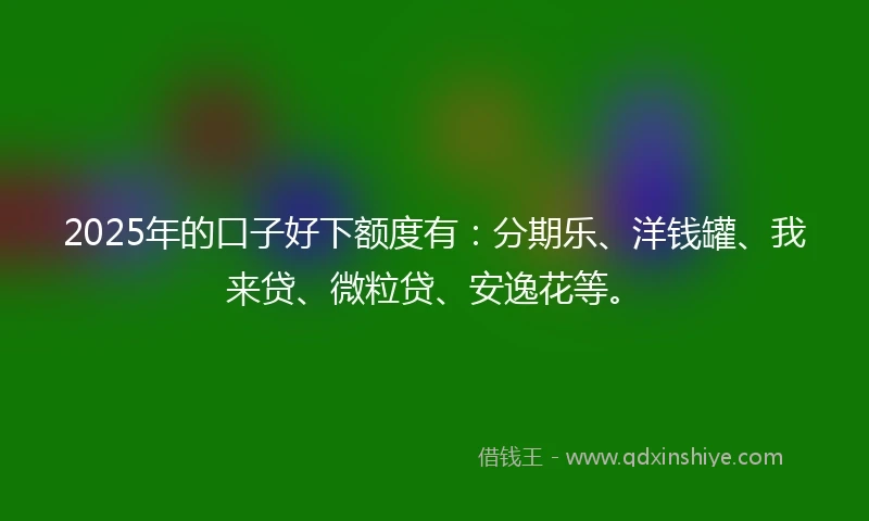 2025年的口子好下额度有:分期乐、洋钱罐、我来贷、微粒贷、安逸花等。