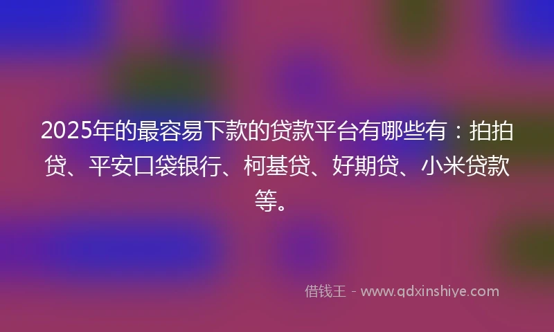 2025年的最容易下款的贷款平台有哪些有:拍拍贷、平安口袋银行、柯基贷、好期贷、小米贷款等。