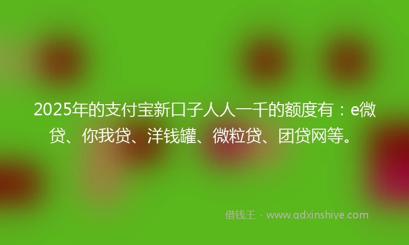 2025年的支付宝新口子人人一千的额度有:e微贷、你我贷、洋钱罐、微粒贷、团贷网等。