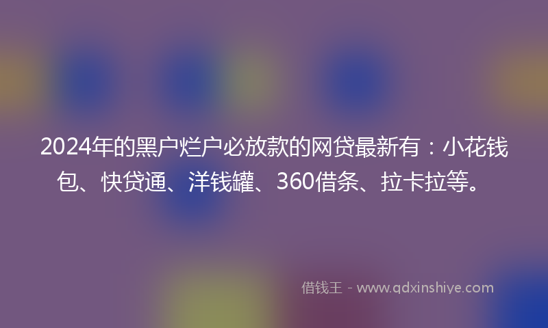 2024年的黑户烂户必放款的网贷最新有:小花钱包、快贷通、洋钱罐、360借条、拉卡拉等。