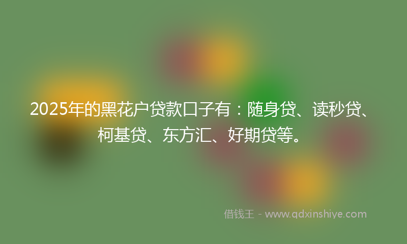2025年的黑花户贷款口子有:随身贷、读秒贷、柯基贷、东方汇、好期贷等。