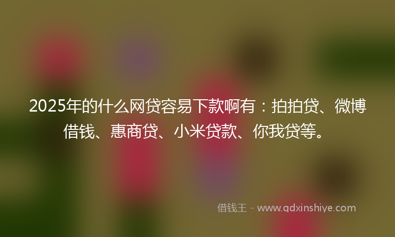 2025年的什么网贷容易下款啊有:拍拍贷、微博借钱、惠商贷、小米贷款、你我贷等。
