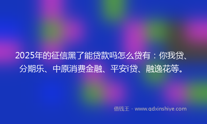2025年的征信黑了能贷款吗怎么贷有:你我贷、分期乐、中原消费金融、平安i贷、融逸花等。