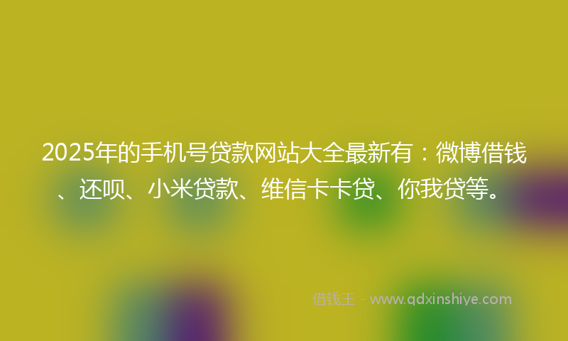 2025年的手机号贷款网站大全最新有:微博借钱、还呗、小米贷款、维信卡卡贷、你我贷等。