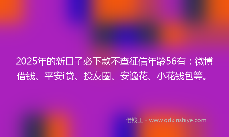 2025年的新口子必下款不查征信年龄56有:微博借钱、平安i贷、投友圈、安逸花、小花钱包等。