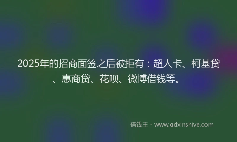 2025年的招商面签之后被拒有:超人卡、柯基贷、惠商贷、花呗、微博借钱等。
