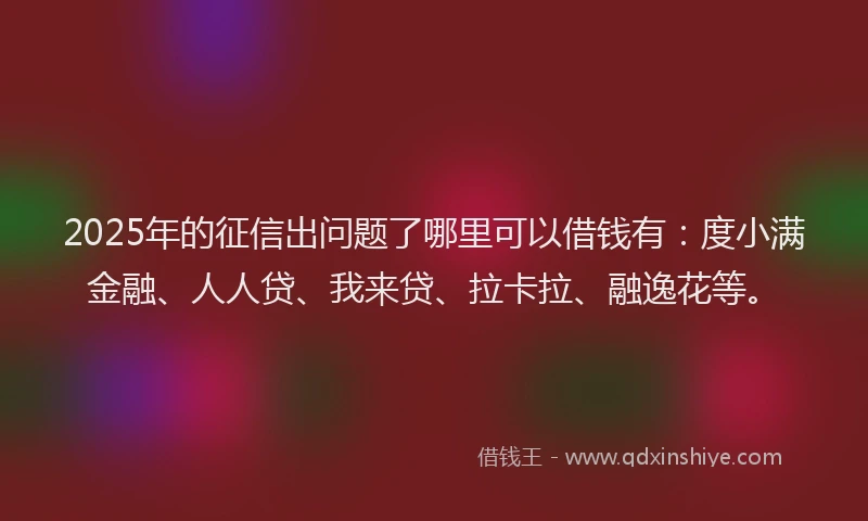 2025年的征信出问题了哪里可以借钱有:度小满金融、人人贷、我来贷、拉卡拉、融逸花等。