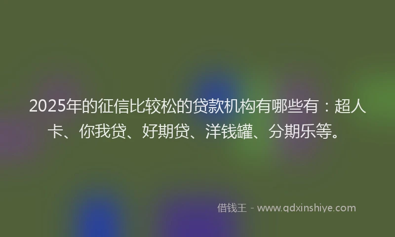 2025年的征信比较松的贷款机构有哪些有:超人卡、你我贷、好期贷、洋钱罐、分期乐等。