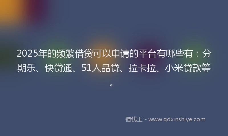 2025年的频繁借贷可以申请的平台有哪些有:分期乐、快贷通、51人品贷、拉卡拉、小米贷款等。