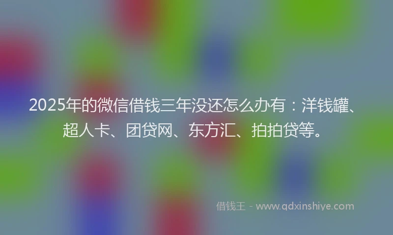 2025年的微信借钱三年没还怎么办有:洋钱罐、超人卡、团贷网、东方汇、拍拍贷等。