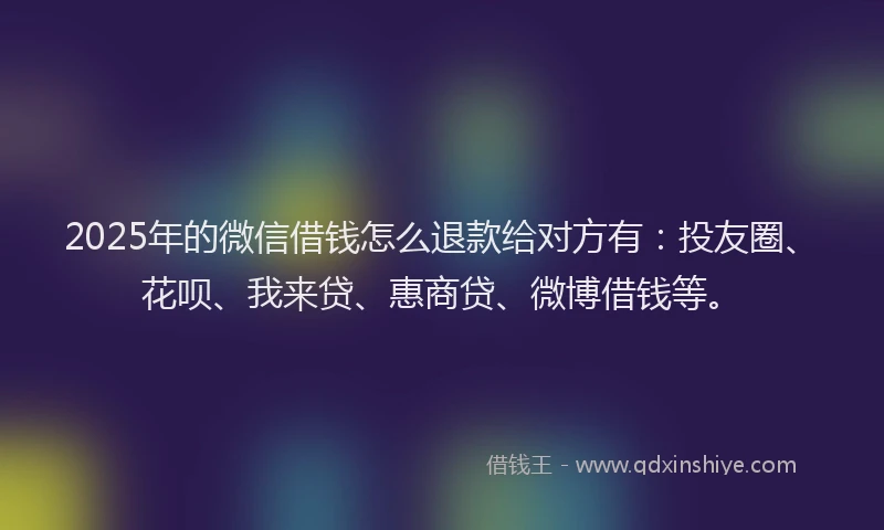 2025年的微信借钱怎么退款给对方有:投友圈、花呗、我来贷、惠商贷、微博借钱等。