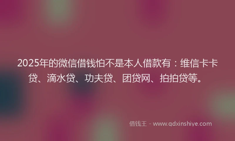 2025年的微信借钱怕不是本人借款有:维信卡卡贷、滴水贷、功夫贷、团贷网、拍拍贷等。