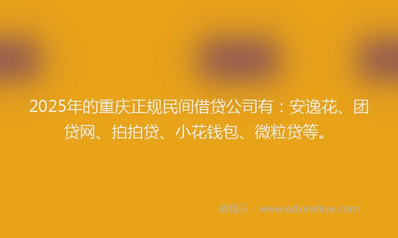 2025年的重庆正规民间借贷公司有:安逸花、团贷网、拍拍贷、小花钱包、微粒贷等。
