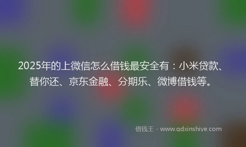 大家好!在当今快节奏的生活中,小额贷款作为一种便捷、高效的金融服务,越来越受到大家的青睐,就让我来为大家详细介绍一下什么是小额贷款,以及推荐几个优秀的小额贷款平台,帮助大家解决资金周转的难题,我将为大家介绍五个上微信怎么借钱最安全。 2025年的上微信怎么借钱最安全有:小米贷款、替你还、京东金融、分期乐、微博借钱等。 一、小米贷款 小米贷款贷款门槛要求比较低