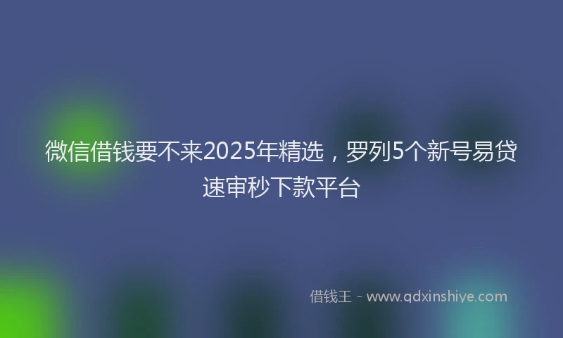 微信借钱要不来2025年精选,罗列5个新号易贷速审秒下款平台