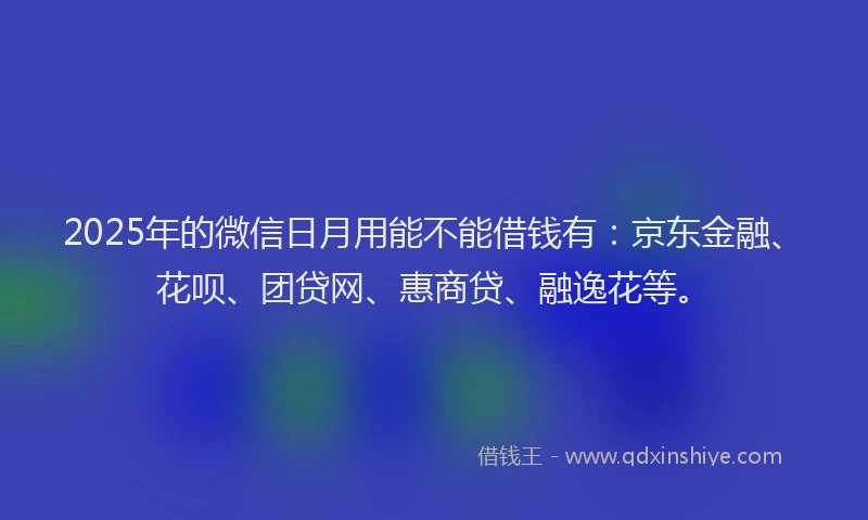 2025年的微信日月用能不能借钱有:京东金融、花呗、团贷网、惠商贷、融逸花等。