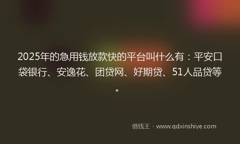 2025年的急用钱放款快的平台叫什么有:平安口袋银行、安逸花、团贷网、好期贷、51人品贷等。