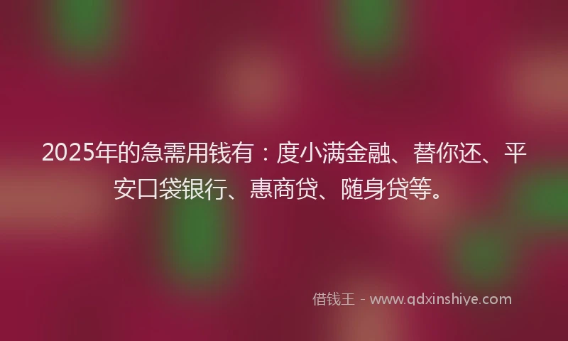 2025年的急需用钱有:度小满金融、替你还、平安口袋银行、惠商贷、随身贷等。