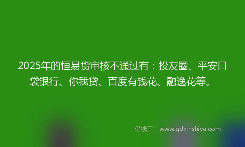 2025年的恒易货审核不通过有:投友圈、平安口袋银行、你我贷、百度有钱花、融逸花等。