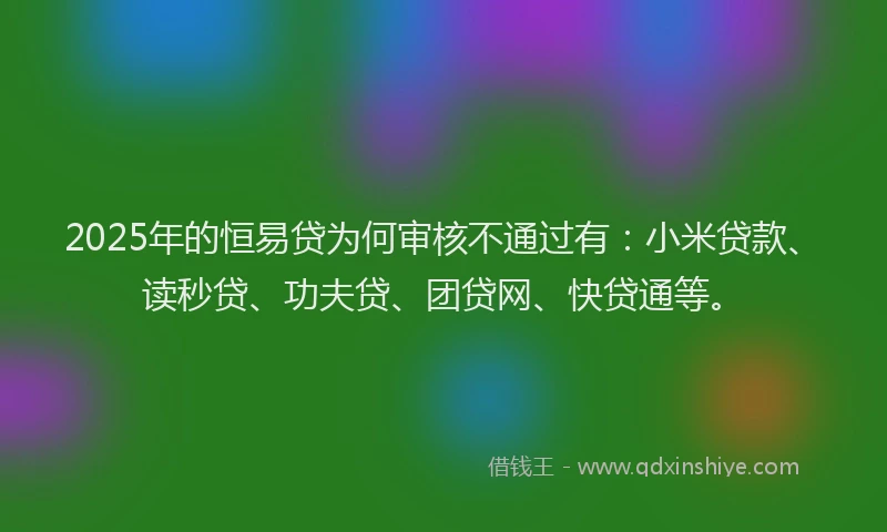 2025年的恒易贷为何审核不通过有:小米贷款、读秒贷、功夫贷、团贷网、快贷通等。