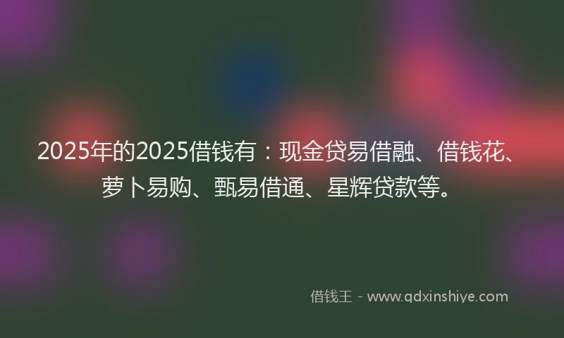 2025年的2025借钱有:现金贷易借融、借钱花、萝卜易购、甄易借通、星辉贷款等。