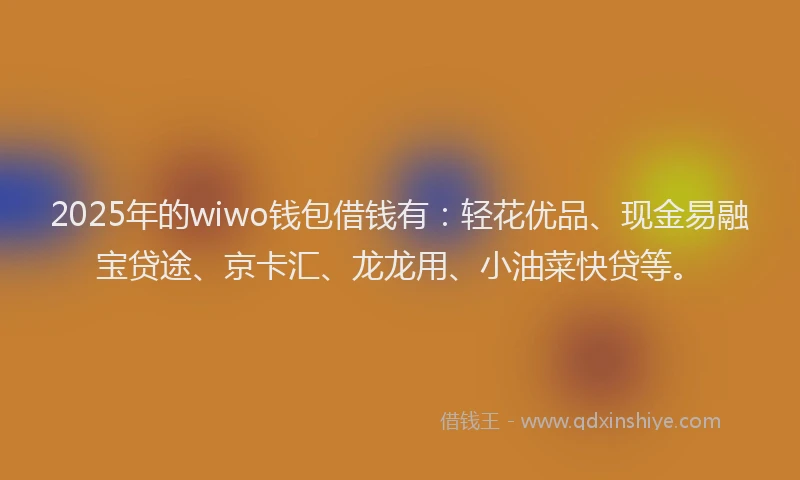 2025年的wiwo钱包借钱有:轻花优品、现金易融宝贷途、京卡汇、龙龙用、小油菜快贷等。