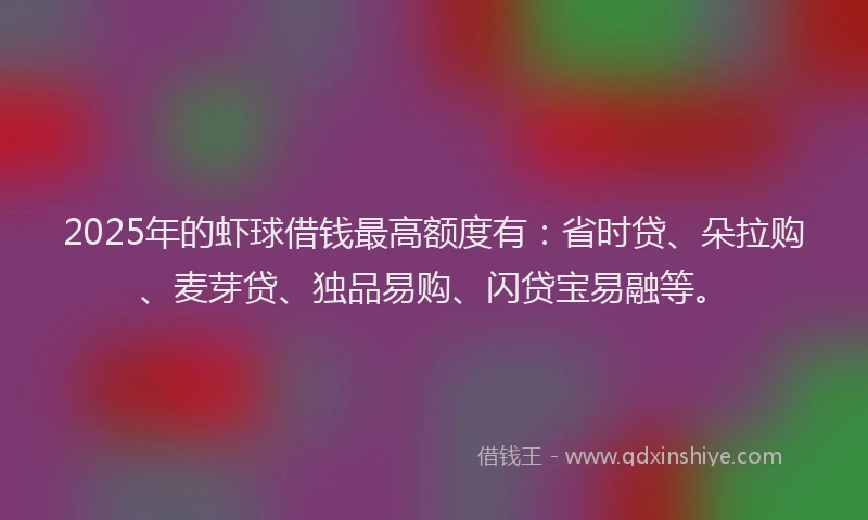 2025年的虾球借钱最高额度有:省时贷、朵拉购、麦芽贷、独品易购、闪贷宝易融等。