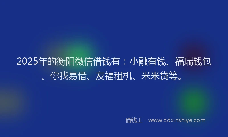 2025年的衡阳微信借钱有:小融有钱、福瑞钱包、你我易借、友福租机、米米贷等。