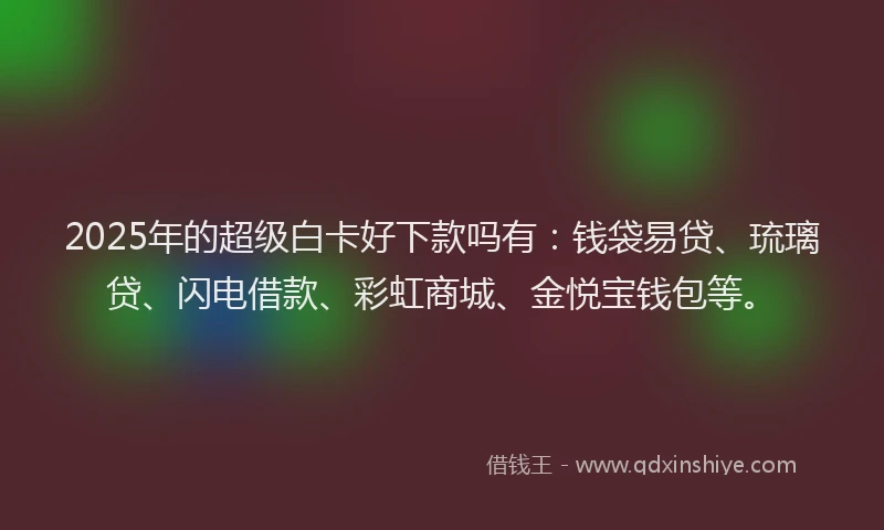 2025年的超级白卡好下款吗有:钱袋易贷、琉璃贷、闪电借款、彩虹商城、金悦宝钱包等。