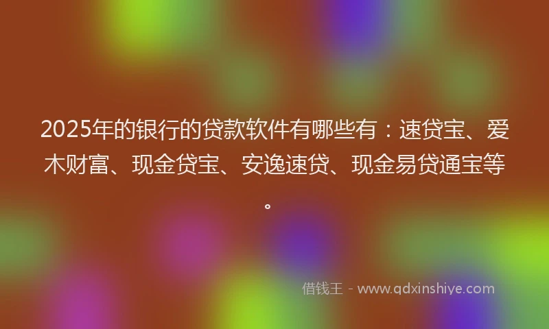 2025年的银行的贷款软件有哪些有:速贷宝、爱木财富、现金贷宝、安逸速贷、现金易贷通宝等。