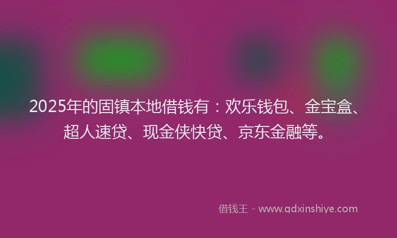 2025年的固镇本地借钱有:欢乐钱包、金宝盒、超人速贷、现金侠快贷、京东金融等。