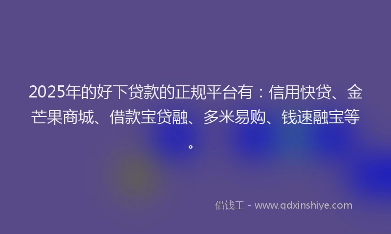 2025年的好下贷款的正规平台有:信用快贷、金芒果商城、借款宝贷融、多米易购、钱速融宝等。
