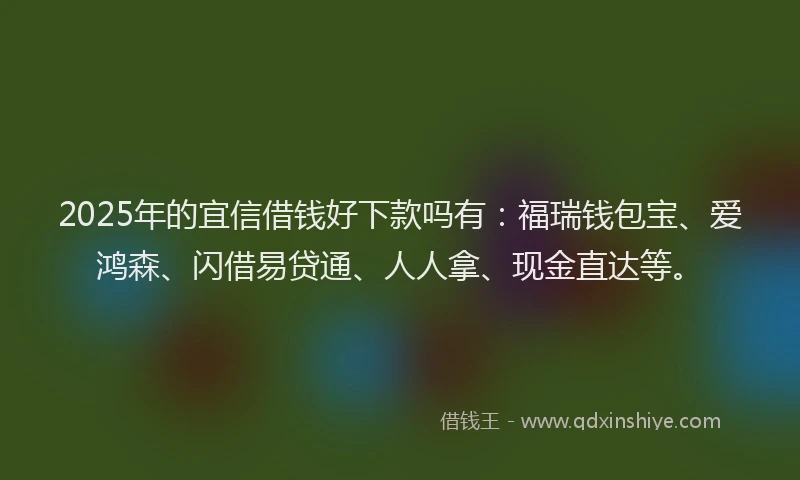 2025年的宜信借钱好下款吗有:福瑞钱包宝、爱鸿森、闪借易贷通、人人拿、现金直达等。