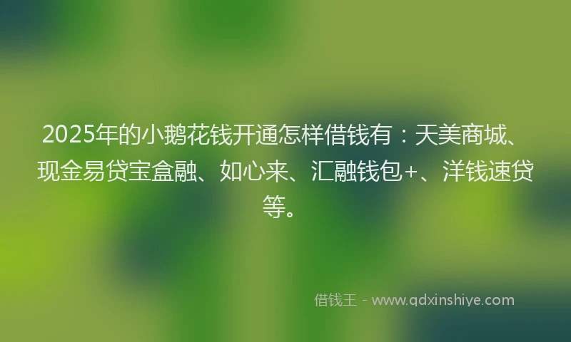 2025年的小鹅花钱开通怎样借钱有:天美商城、现金易贷宝盒融、如心来、汇融钱包+、洋钱速贷等。