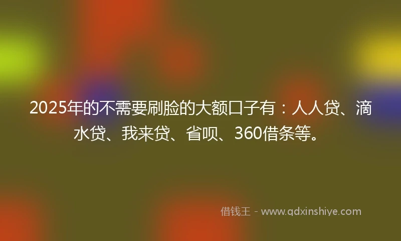 2025年的不需要刷脸的大额口子有:人人贷、滴水贷、我来贷、省呗、360借条等。