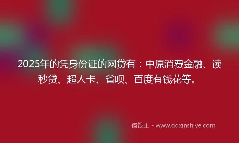 2025年的凭身份证的网贷有:中原消费金融、读秒贷、超人卡、省呗、百度有钱花等。