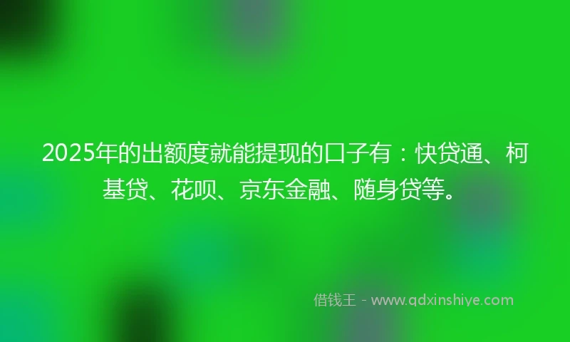 2025年的出额度就能提现的口子有:快贷通、柯基贷、花呗、京东金融、随身贷等。