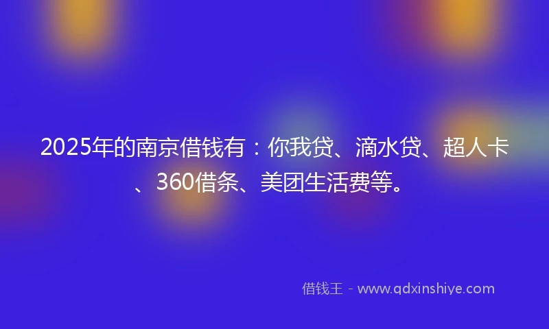 2025年的南京借钱有:你我贷、滴水贷、超人卡、360借条、美团生活费等。