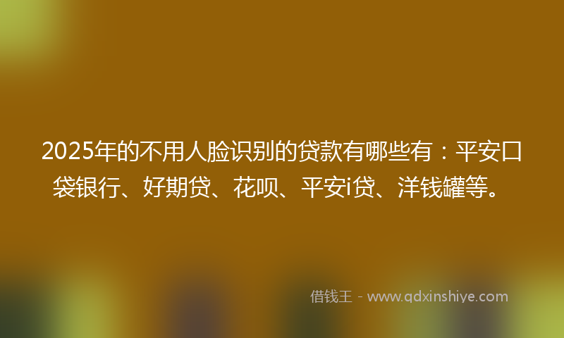 2025年的不用人脸识别的贷款有哪些有:平安口袋银行、好期贷、花呗、平安i贷、洋钱罐等。