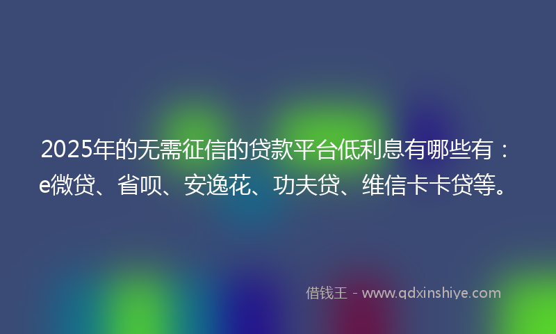 2025年的无需征信的贷款平台低利息有哪些有:e微贷、省呗、安逸花、功夫贷、维信卡卡贷等。