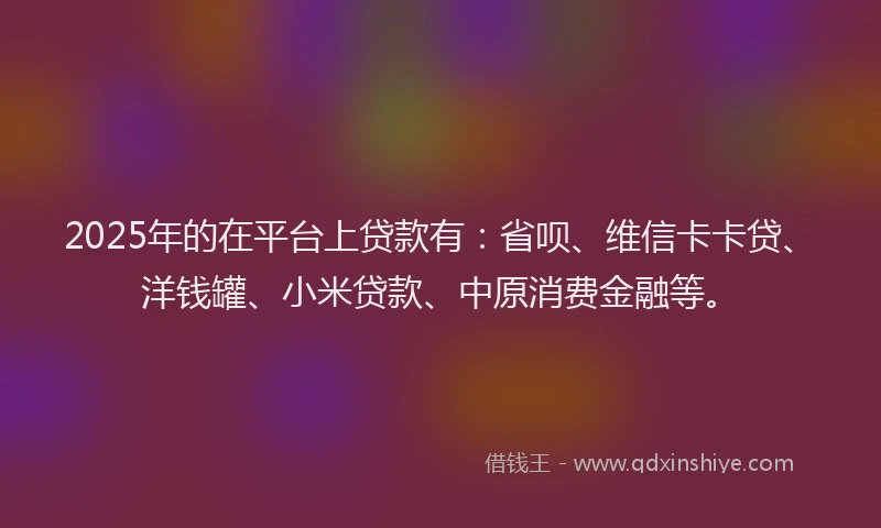 2025年的在平台上贷款有:省呗、维信卡卡贷、洋钱罐、小米贷款、中原消费金融等。