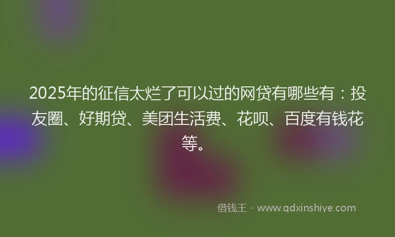 2025年的征信太烂了可以过的网贷有哪些有:投友圈、好期贷、美团生活费、花呗、百度有钱花等。